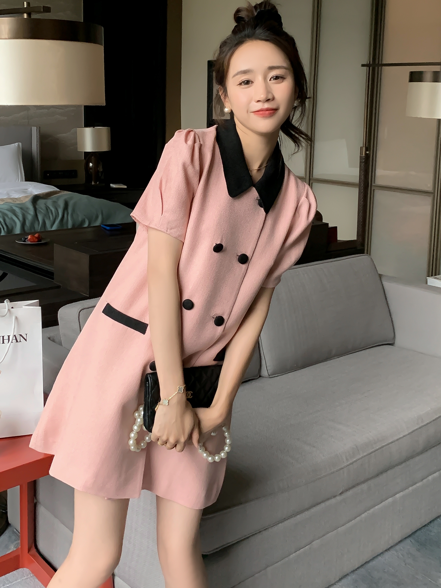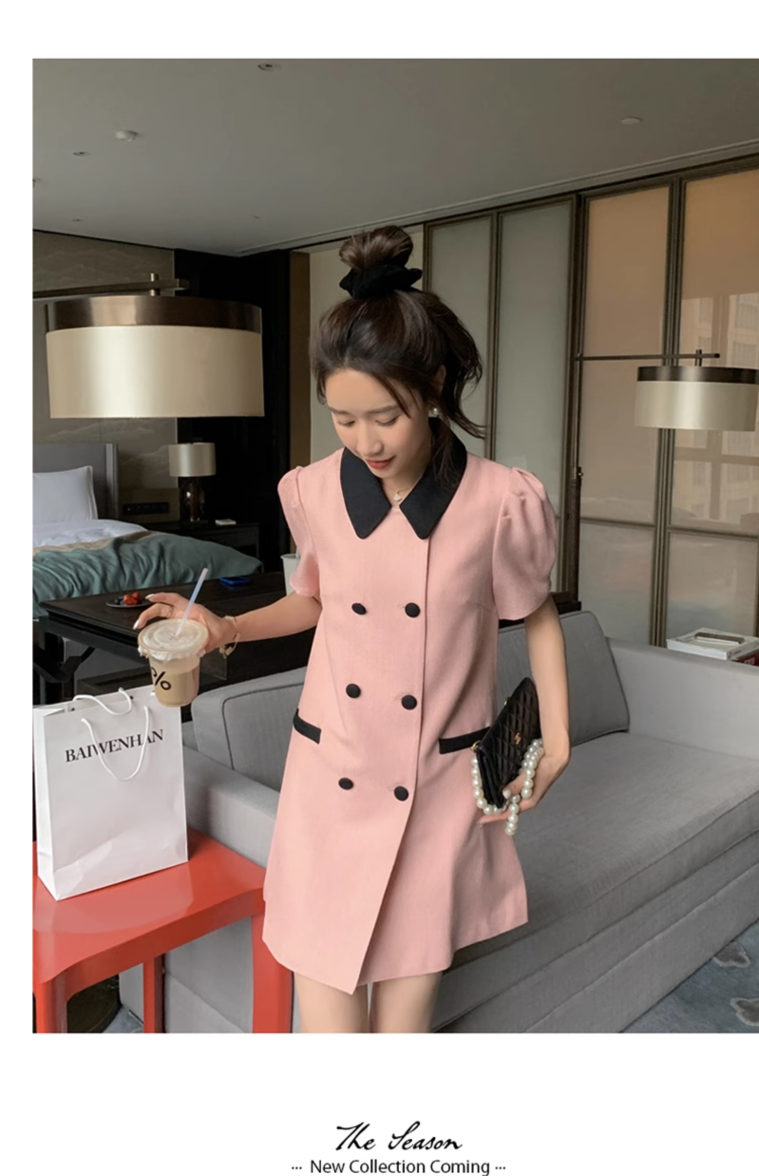 Classic Style Pink Summer Suit Skirt