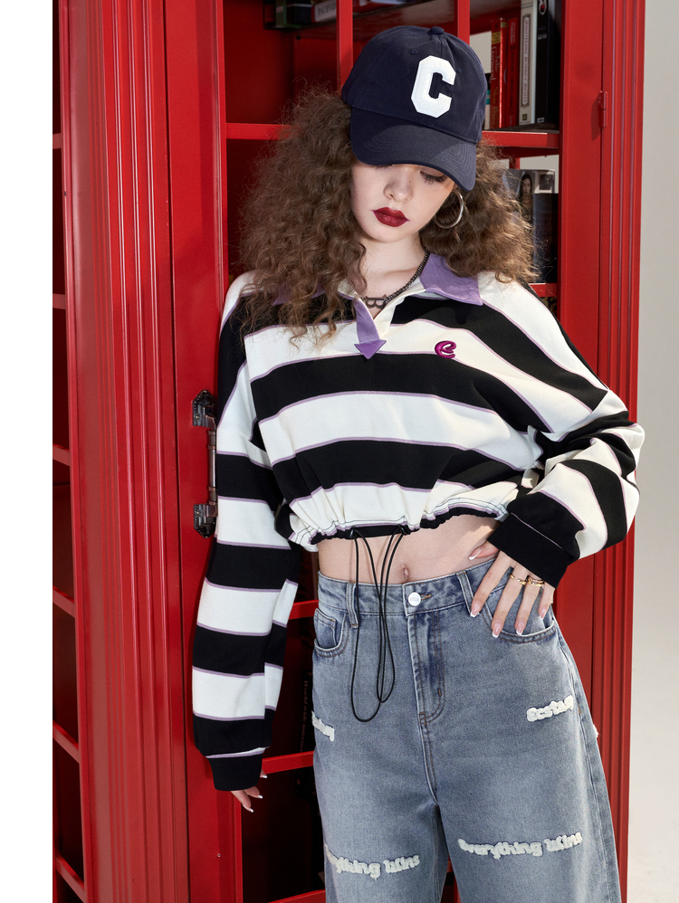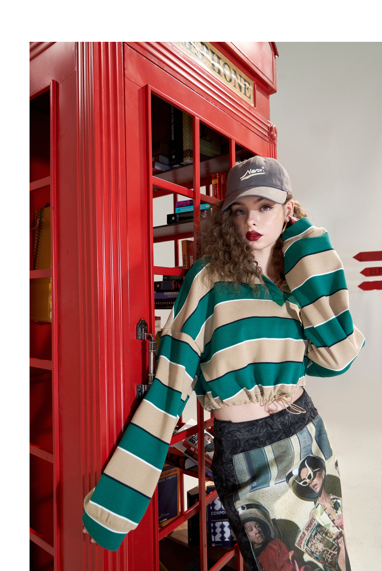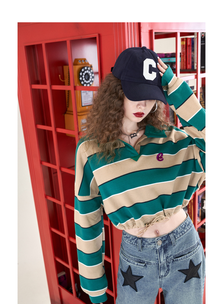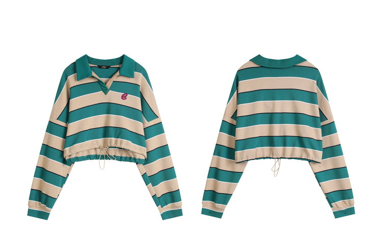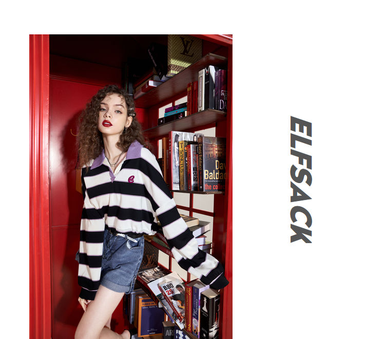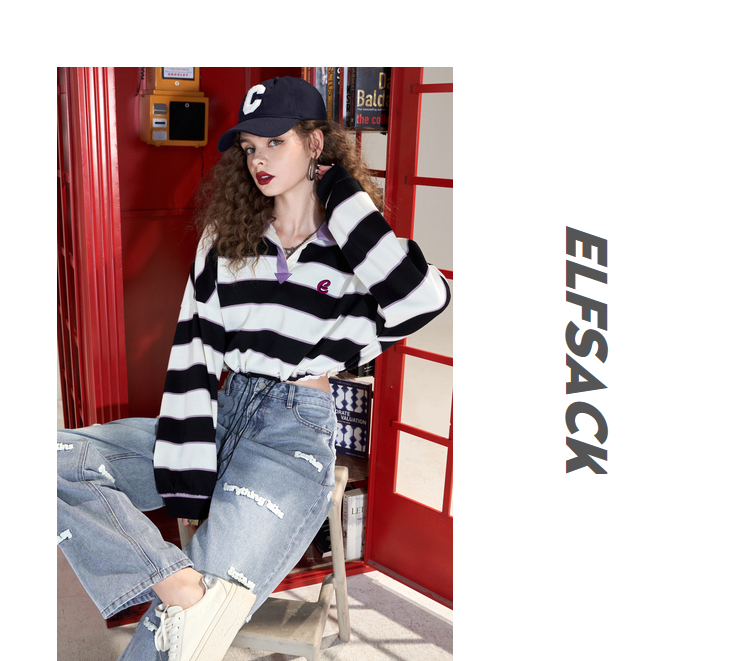 Elf Sack Polo Collar Striped Casual Sweatshirt