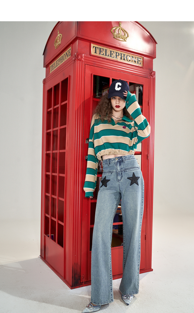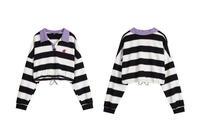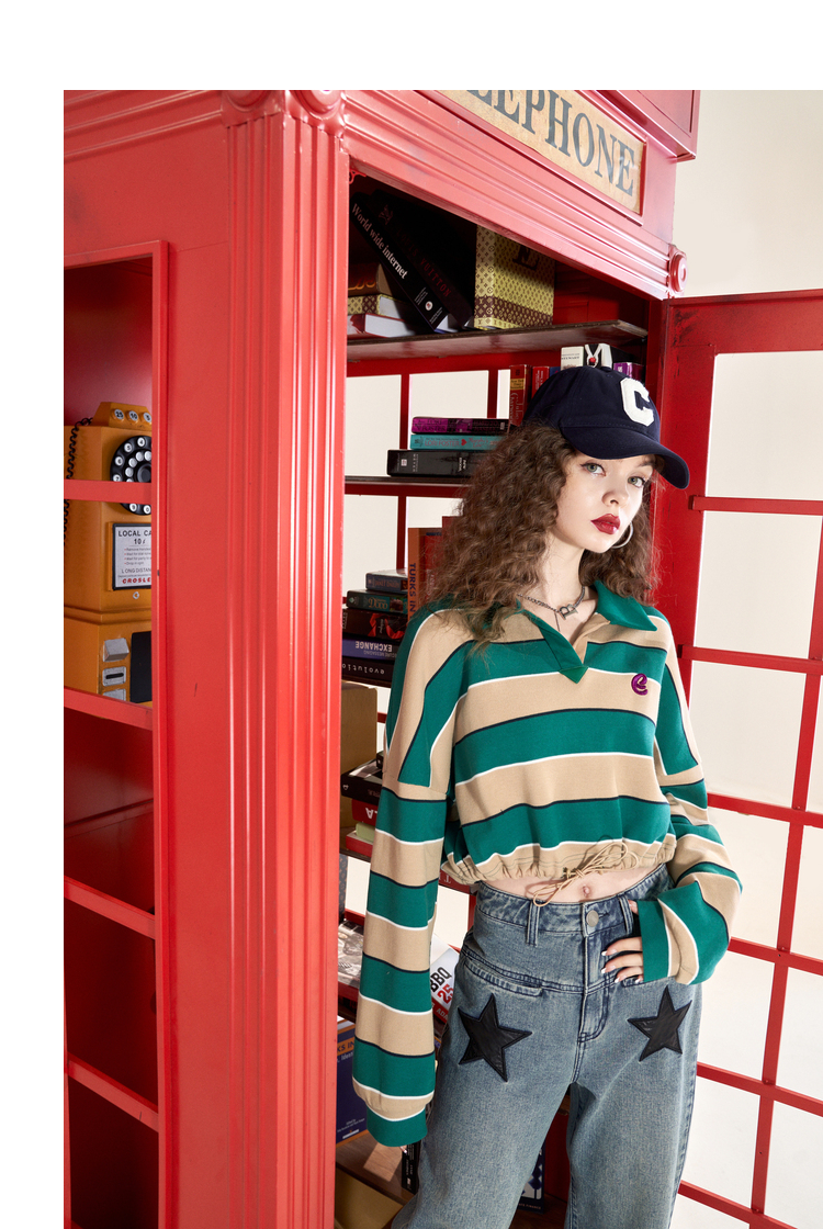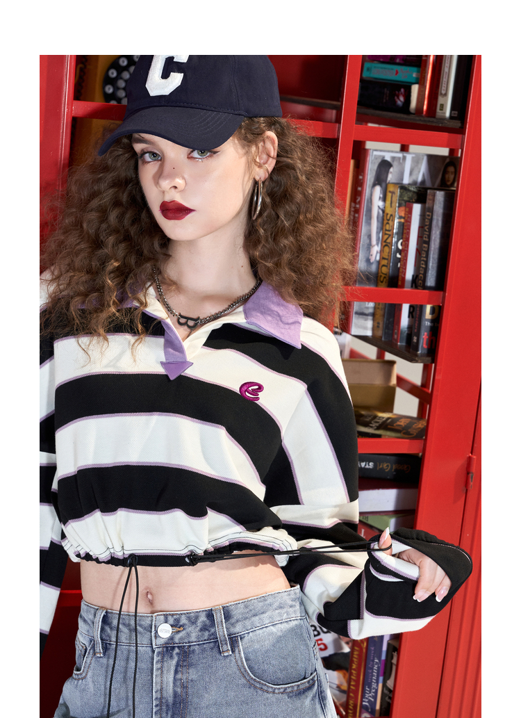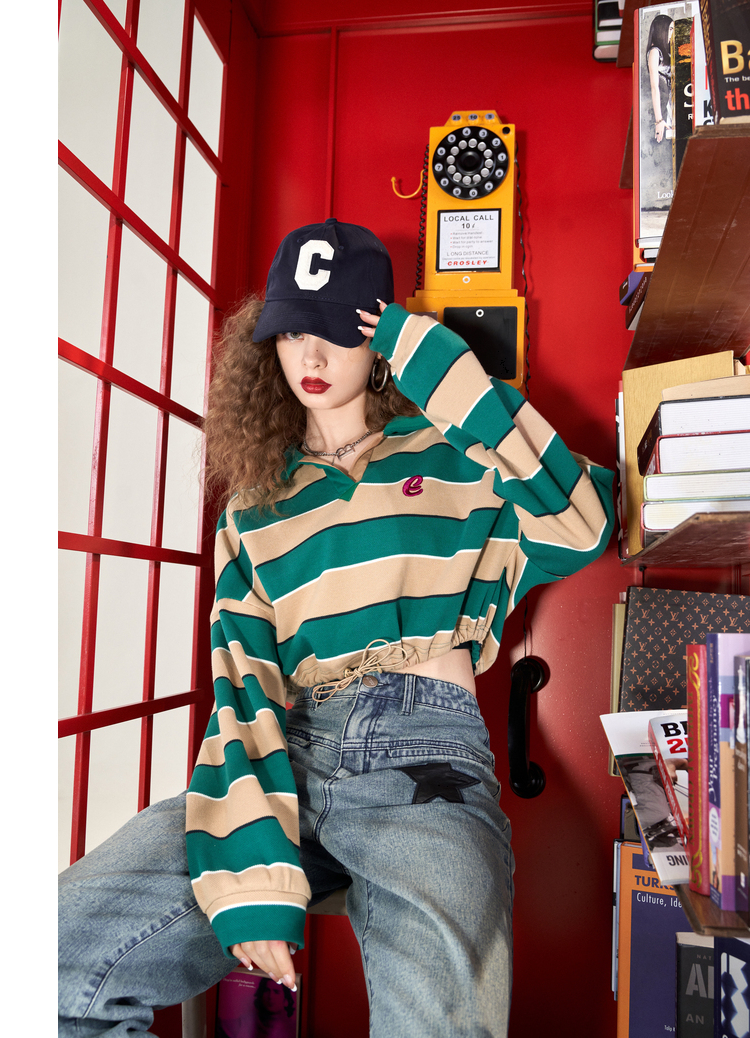 Elf Sack Polo Collar Striped Casual Sweatshirt