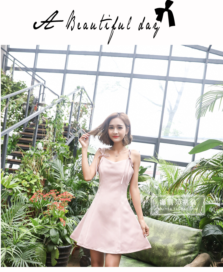 New V-neck Backless Slim Fit Sling Pink Skirt