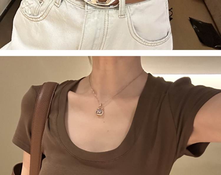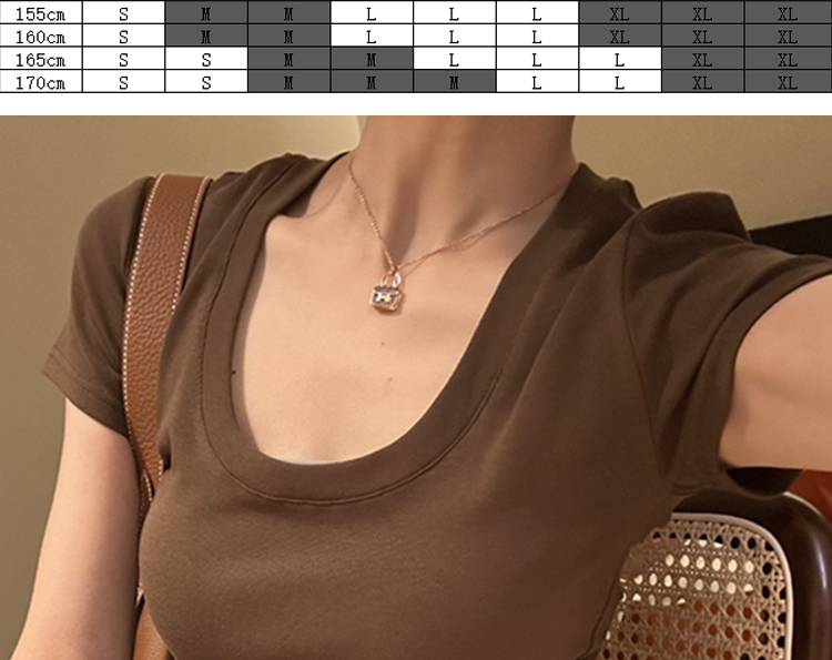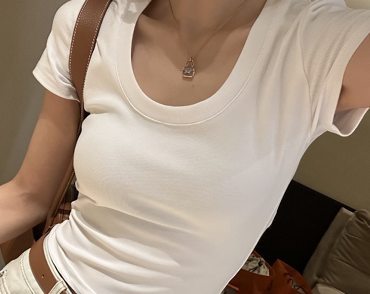 White U-Neck Shoulder Short Sleeve T-shirt Women's Summer Slim Fit Skinny Slimming and Short White T Half Sleeve Tops Cotton T-shirt